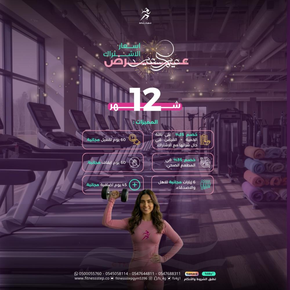 عروض حصرية مع العديد من المزايا المجانية, اشتراك شامل جميع الصالات, المرافق المائية, الكلاسات المتنوعة (تكميم, كروس فيت, علاج طبيعي, مفاصل مرنة, زومبا, مقاومة, كارديو, رقص شرقي, كلاسات مائية وعلاجية والعديد من الكلاسات المتنوعة )
